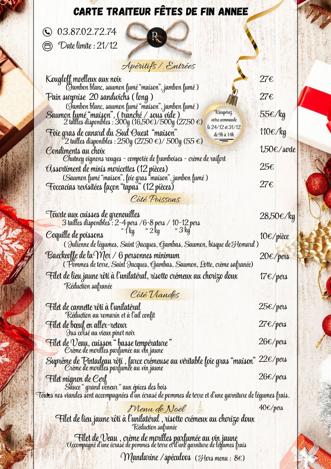 Notre carte traiteur spéciale fêtes pour le 24/12 et le 31/12 est désormais disponible.