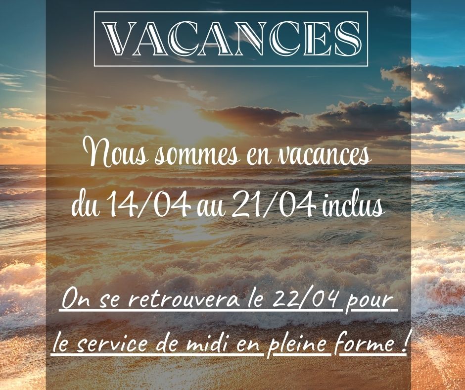 Actualités Accueil Actualités Actualités du restaurant Vacances Actualités du restaurant Vacances Publié le 12 avril 2026 Partagez sur